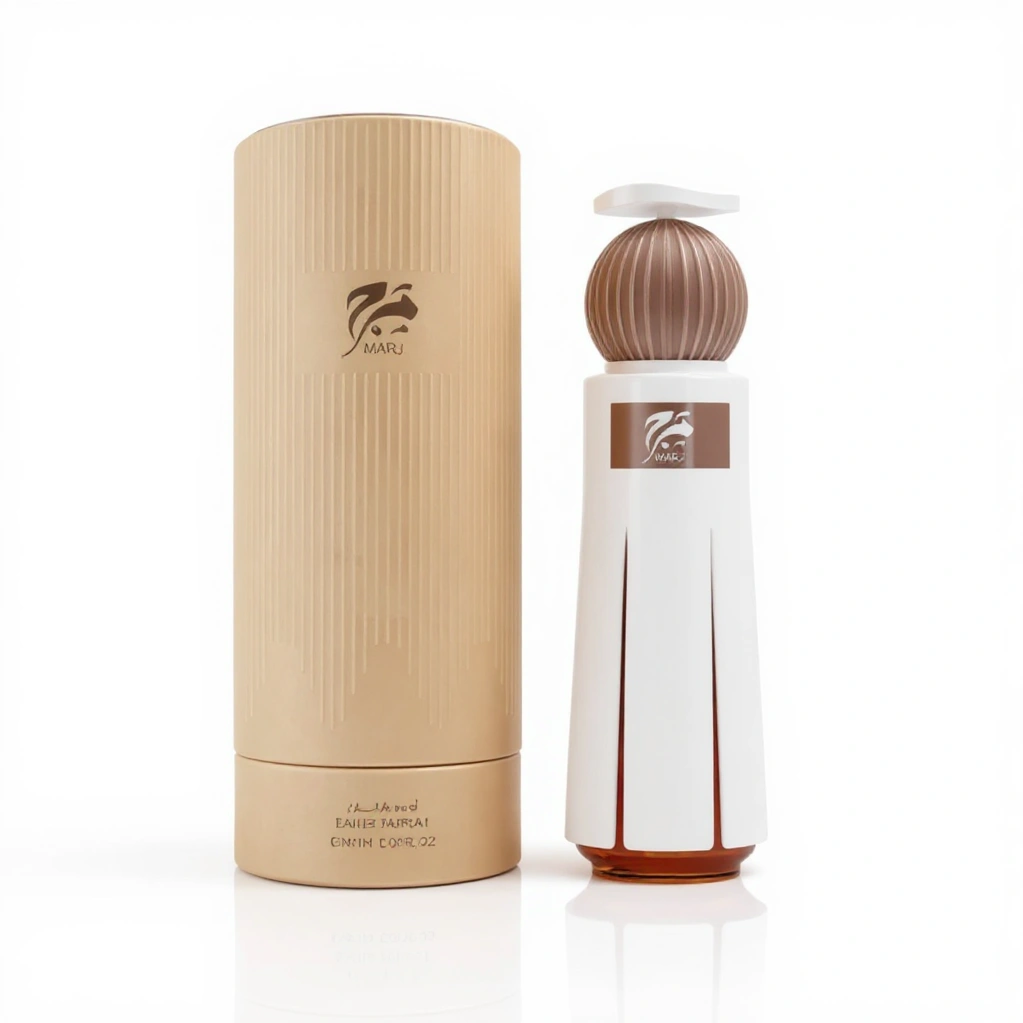Marj by Ahmed Al Maghribi(2023) is a luxurious, unisex Eau de Parfum featuring a complex blend of sweet honeyed oud, spicy notes, and rich leather. The scent opens with vibrant bergamot, pink pepper, and mandarin, transitioning into a floral heart of rose, jasmine, and saffron before settling into a long-lasting base of agarwood, amber, musk, and fruity notes. It is known for its high-quality, "beast mode" performance, often lasting over 12 hours